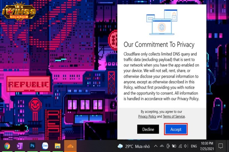 Bước 3: Khi máy báo cài phần mềm thành công, máy tính của bạn sẽ nhận được thông tin giới thiệu về ứng dụng WARP. Lúc này, bạn đọc qua một số tin cơ bản mà mình quan tâm và chọn Accept.